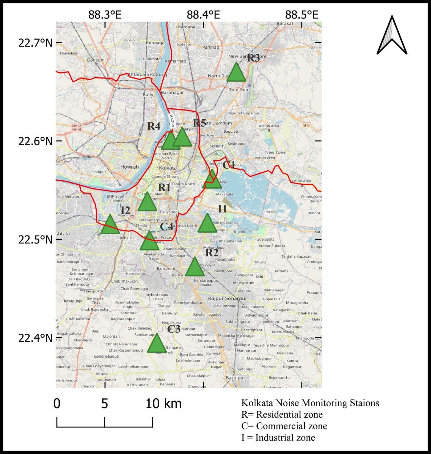 The location of the noise monitoring sites of Kolkata are :
