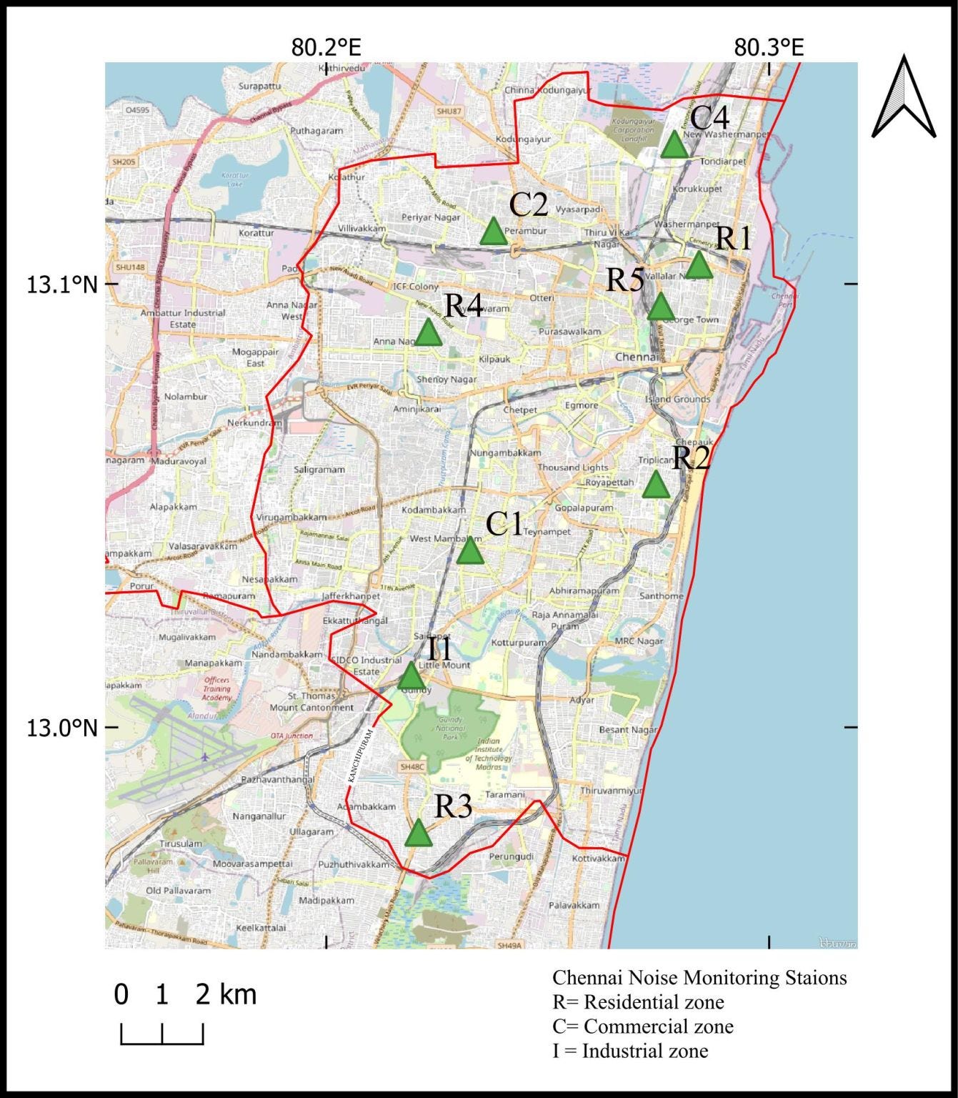 The location of the noise monitoring sites of Chennai are as follows: