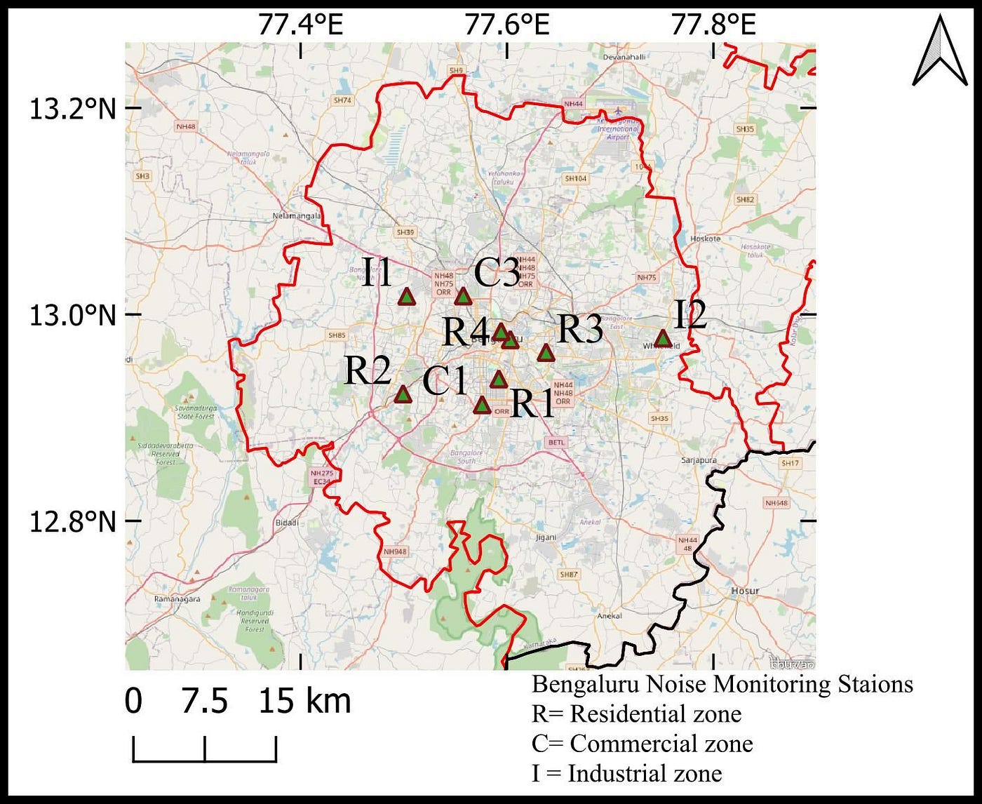 The location of the noise monitoring sites of Bengaluru are as follows :