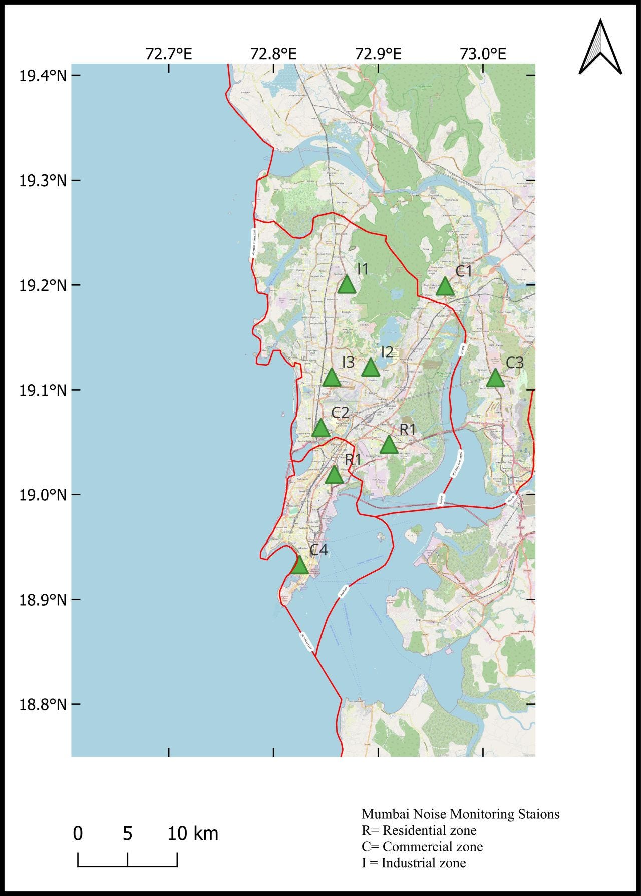Map of the Noise monitoring stations in Mumbai is as follows: